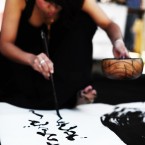 Live personalied calligraphy on “Uchiwa” @Minamoto Kitchoan, SF